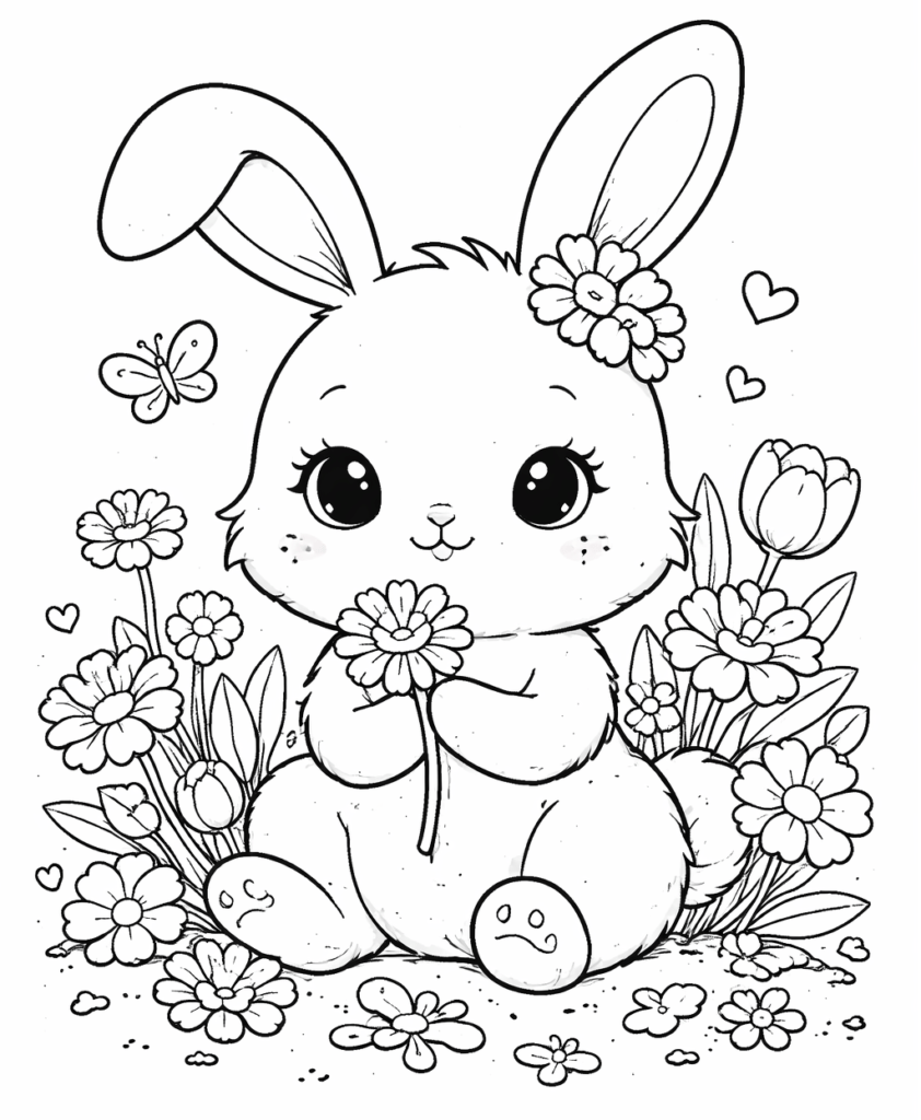 Start with our cute bunny coloring page. It is free to download, easy to print, and fun for kids who enjoy animal coloring pages.